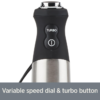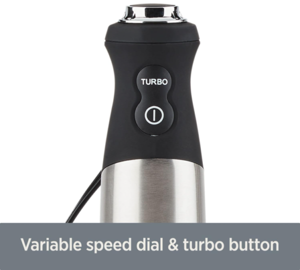 Transitioning to control options, the All-Clad Immersion Blender offers an adjustable variable-speed dial and a turbo button. This feature is crucial for achieving the desired texture in your blends. With the variable-speed dial, you can select the perfect speed for different tasks. For instance, a lower speed is ideal for gently blending sauces, while higher speeds can be used for more intensive blending needs.