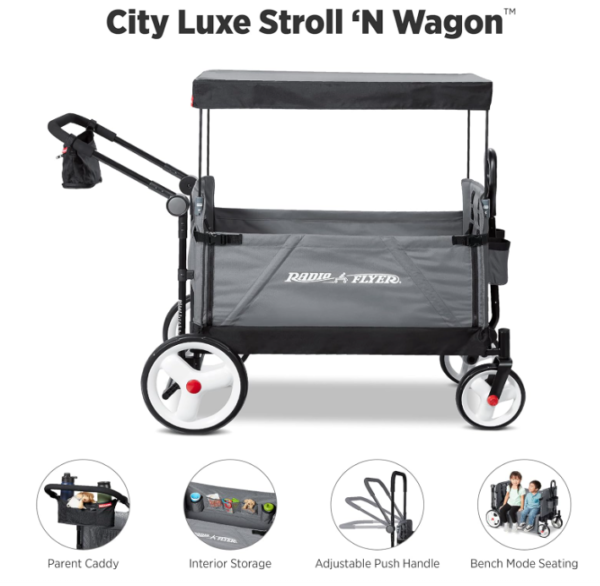 • PUSH & PULL: The City Luxe Stroll ‘N Wagon allows you to pull like a wagon or push for ultimate convenience in one vehicle. It features a NeverFall wagon pull handle in the front and a fold-away push handlebar on the back.