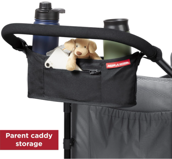 • STORAGE CAPACITY: This Stroll N’ Wagon includes a parent caddy for the adult’s storage needs and internal storage pockets for the little ones. It also comes with a rear storage pouch to store the canopy in when not in use and two front cup holders.