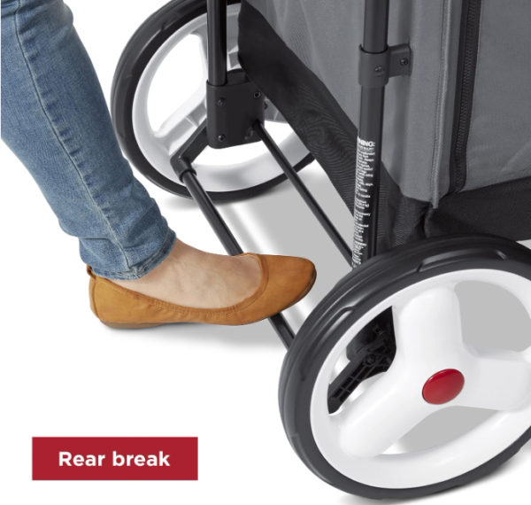 • SAFE FOR KIDS: Radio Flyer Stroll N’ Wagons pass the ASTM-f963-13 toy safety standard. This wagon includes a rear foot brake, 5-point safety harnesses and a UV protection canopy to protect your little ones from the sun.